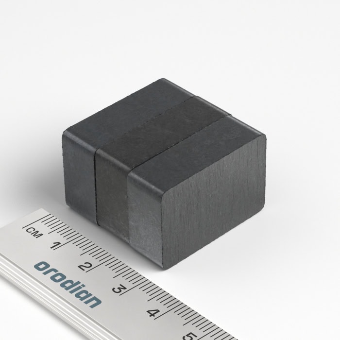 Feritový magnet v tvare kvádra je vyrobený z materiálu Fe2O3. Tento typ magnetov je najslabší zo všetkých druhov magnetov v našej ponuke. V mnohých prípadoch je však aj táto sila postačujúca.