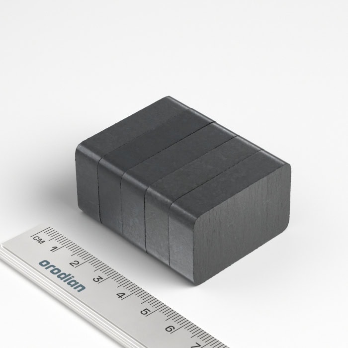 Feritový magnet v tvare kvádra je vyrobený z materiálu Fe2O3. Tento typ magnetov je najslabší zo všetkých druhov magnetov v našej ponuke. V mnohých prípadoch je však aj táto sila postačujúca.