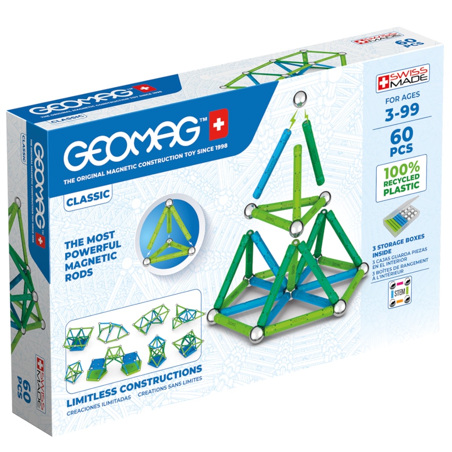 Ide o klasickú verziu stavebnice. Obsahuje 60 dielikov a 3 odkladacie krabičky. Obľubujú ju malí i veľkí. Stavebnice Geomag dokážu pri hre spojiť celé rodiny či skupinky priateľov.