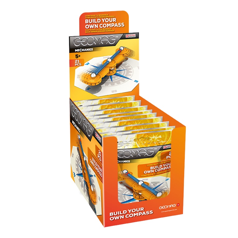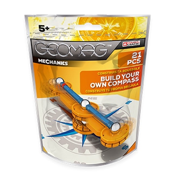 So stavebnicou Geomag Mechanics Compass 21 dielov spoznáte účinky magnetického poľa Zeme a hravou formou sa naučíte určovať svetové strany. Táto magnetická stavebnica je preto vhodná aj ako školská pomôcka.